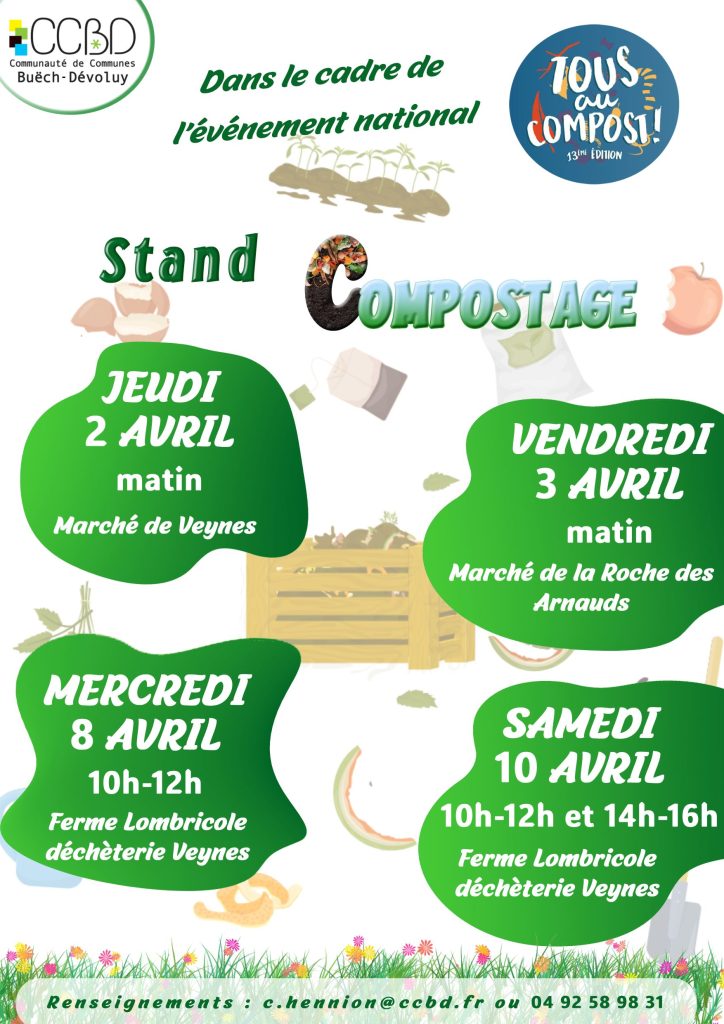 La Communauté de Communes Buëch-Dévoluy organise des moments et des rencontres conviviales autour de cette thématique environnementale et citoyenne. Ces actions ont pour objectif de sensibiliser à la pratique du compostage, à la gestion et à la valorisation des biodéchets alimentaires.